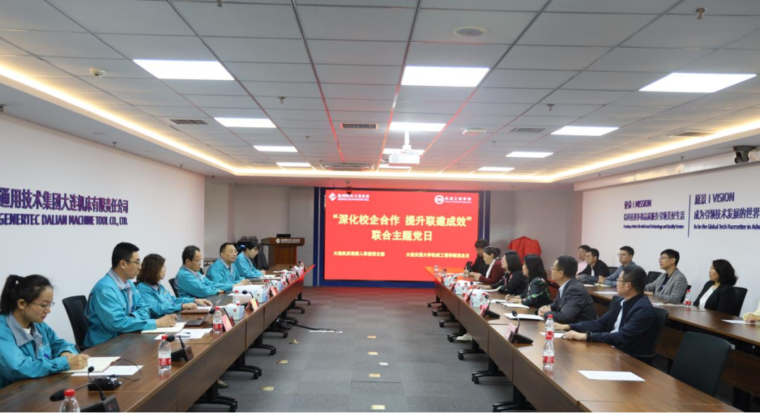 活动中,学院党总支书记牛力就学院党总支学习贯彻习近平新时代中国特色社会主义思想主题教育理论学习的开展情况做了经验交流,学院党总支副书记刘灿娟以“构建党建五+新模式,促进党建工作与学生管理工作深度融合”为主题做了党建特色工作分享。党群人事部党支部书记严国斌将通用技术大连机床重整后党建工作进行了介绍。随后,双方就如何将高质量党建与高质量事业发展相融合的问题进行了探讨。